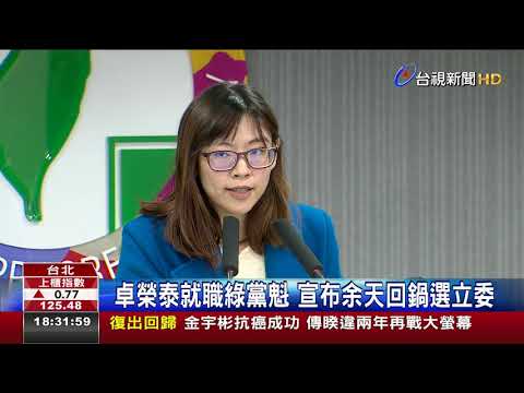 卓榮泰就職綠黨魁宣布余天回鍋選立委