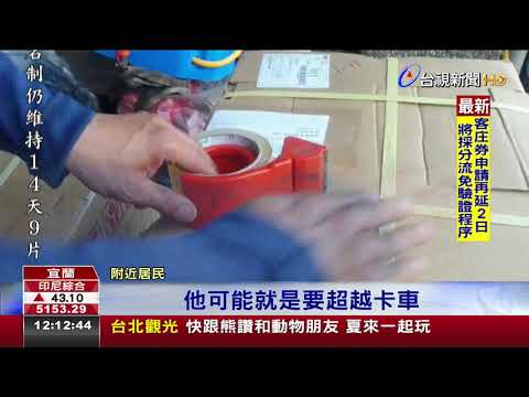 砂石車突右靠轎車失控打滑橫停路中央