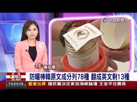 防曬棒韓原文成分列78種 翻成英文剩13種